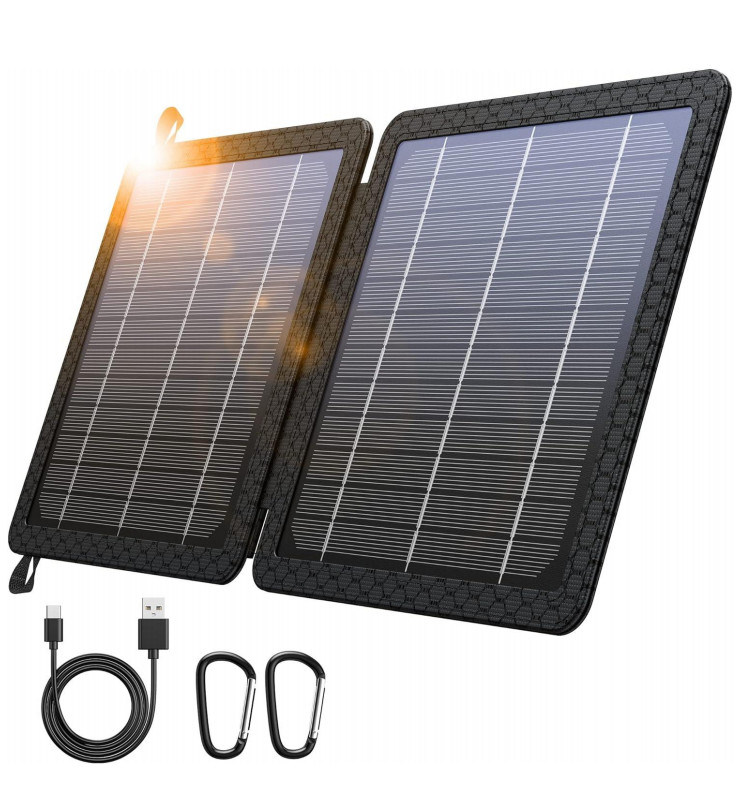 Складываемое солнечное зарядное устройство мощностью 10 Вт с выходом USB (5 В, 2 А максимум), оснащенное двумя выходами USB, обеспечивает